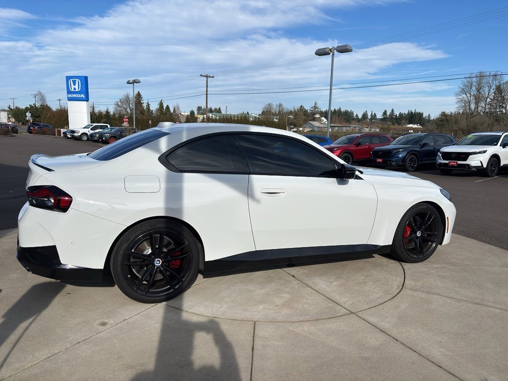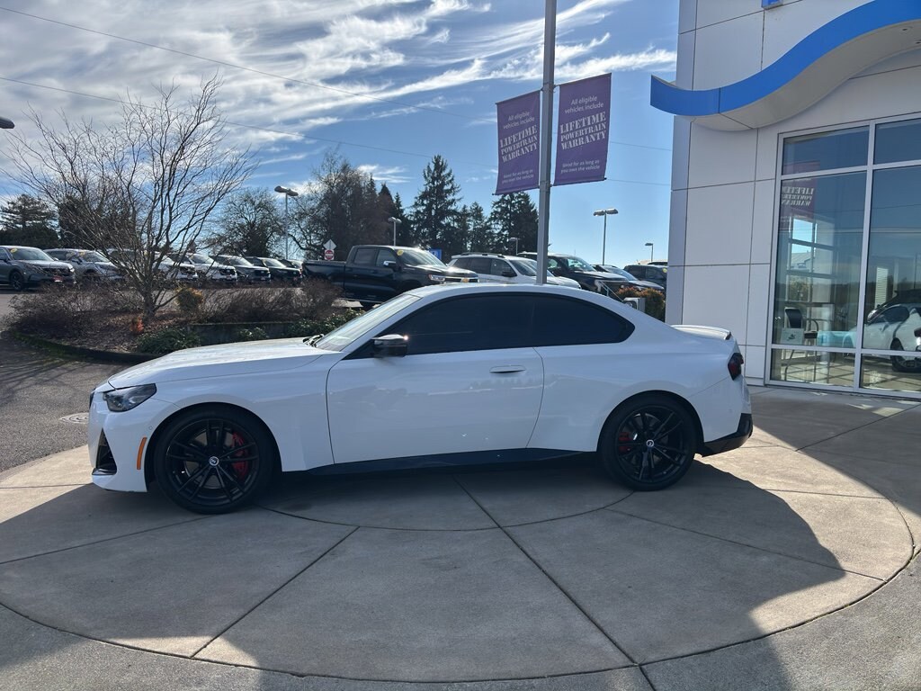 The leather seats in this unit are a must for buyers looking for comfort, durability, and style. This small car offers Apple CarPlay for seamless connectivity. It parks itself with Parking Assistance. Keep your hands warm all winter with a heated steering wheel in the vehicle . You'll never again be lost in a crowded city or a country region with the navigation system on this small car. This BMW 2 series features a hands-free Bluetooth phone system. Start this 2023 BMW 2 series from inside with remote start. See what's behind you with the back up camera on it. It offers Android Auto for seamless smartphone integration. This small car's Lane Departure Warning keeps you safe by alerting you when you drift from your lane. This model is rear wheel drive. This model has a 6 Cyl, 3.0L high output engine. This 2023 BMW 2 series embodies class and sophistication with its refined white exterior.