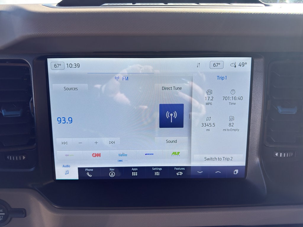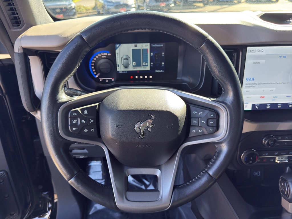 Keep your hands warm all winter with a heated steering wheel in this Ford Bronco . The state of the art park assist system will guide you easily into any spot. The Ford Bronco's Cross-Traffic Alert: Safeguarding you from unexpected traffic when reversing. See what's behind you with the back up camera on the vehicle. This 1/2 ton suv comes equipped with Android Auto for seamless smartphone integration on the road. Start this unit from inside with remote start. You'll never again be lost in a crowded city or a country region with the navigation system on this vehicle. The vehicle has auto-adjust speed for safe following. An off-road package is installed on this vehicle so you are ready for your four-wheeling best. Bluetooth technology is built into this 1/2 ton suv, keeping your hands on the steering wheel and your focus on the road. The vehicle offers Apple CarPlay for seamless connectivity.Start this model from inside with remote start.